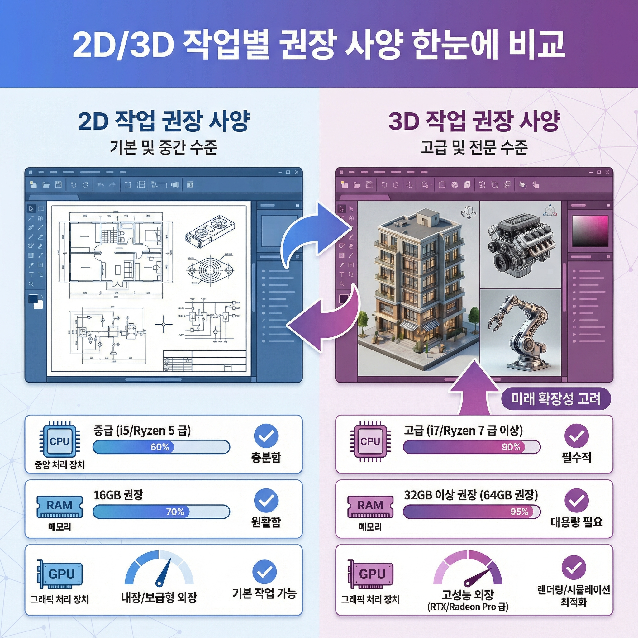 ◆ 2D/3D 작업별 권장 사양 한눈에 비교