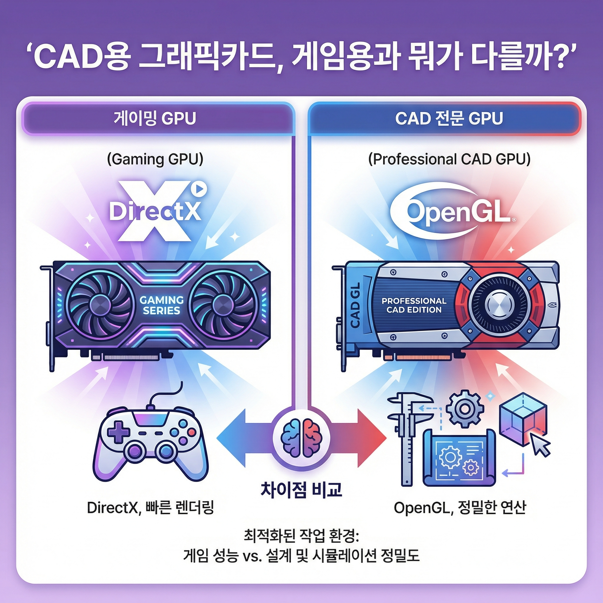 흔히 "그래픽카드는 비싸면 좋은 거 아냐?"라고 생각하기 쉽습니다. 🤔 하지만 CAD 작업과 게임은 그래픽카드를 쓰는 방식이 완전히 다릅니다.