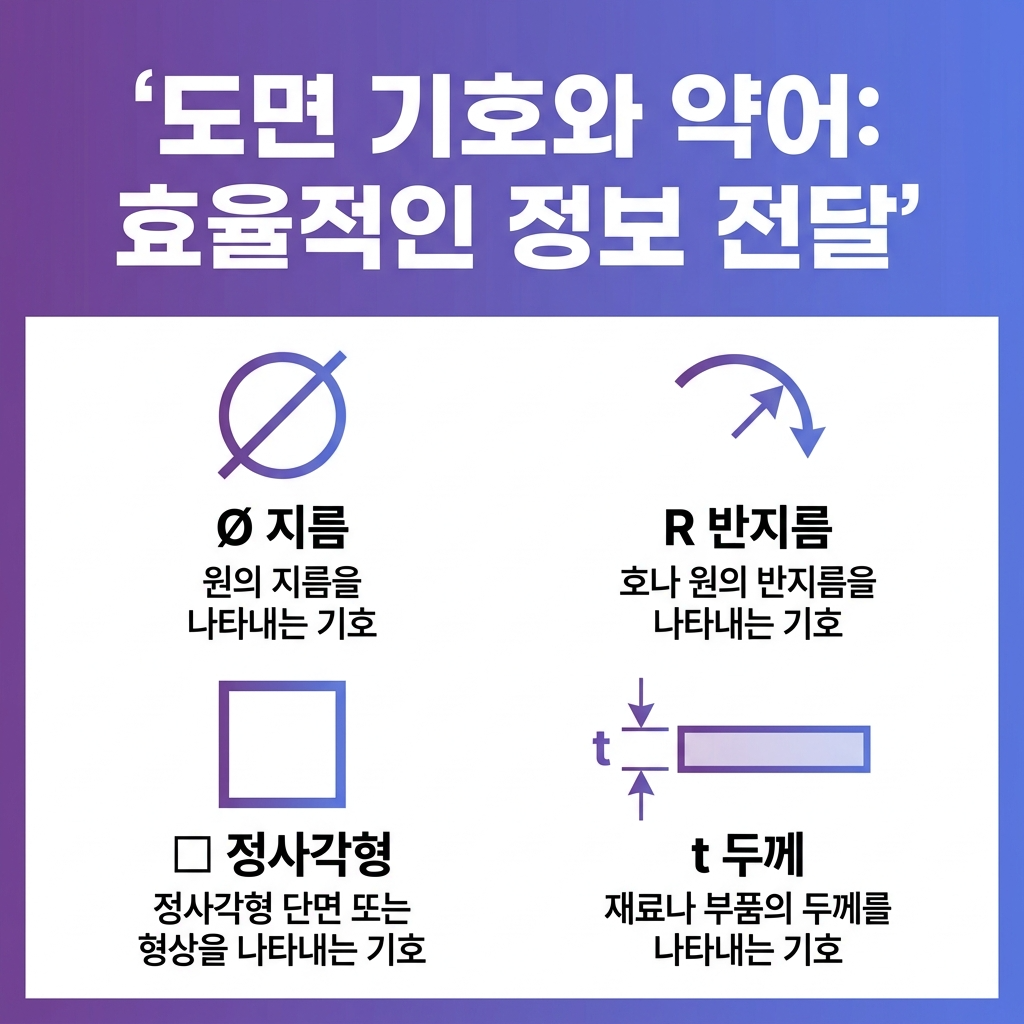 도면에는 자주 사용하는 정보를 간단한 기호나 약어로 표현해요. 이런 기호들을 알아두면 도면 해석 속도가 빨라지고, 작성할 때도 간결하게 표현할 수 있어요.