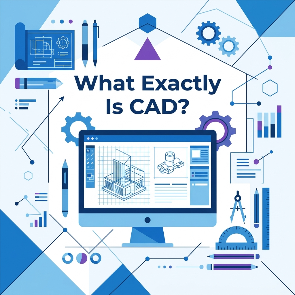 CAD stands for Computer-Aided Design. In simple terms, it's software that helps people design things — from tiny mechanical parts to massive skyscrapers — using a computer instead of a pencil and paper.